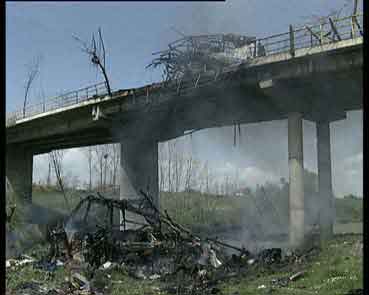 NATO avioni gadjali su most preko reke Lab na magistralnom putu Nis-Pristina u selu Luzane, 15 km od Pristine. Prema jos poslednjim podacima ubijeno je 60 civila ali se strahuje da je broj veci jer je prema recima dispecera niske autobuske stanice Dragana Jocica tog dana vladala velika guzva u pravcu prema Pristini pa je autobus primio vise putnika od uobicajenog broja. Yesterday at 1:50 PM cet, NATO combat jets attacked bridge over river Lab on main road Nis-Pristina in village of Luzane, 8 miles from Pristina. Due to last reports 60 civilians were killed but the fear remain that the number could even rise because there were much more passengers than the capacity of the bus normally allows. Dragan Jocic, main line operator at Nis bus station said that there was big crowd for the Pristina line so the bus had to accept more passengers. Gestern um 13.50 Uhr (cet), zielten NATO-Flugzeuge die Lab-Bruecke, auf der Magistrale Nisch-Prischtina in dem Dorf Luzane, 15km von Prischtina entfernt. Nach letzten Angaben wurden 60 Zivilisten umgebracht, und es wird befuerchtet das die Zahl der Opfer steigen wird, denn nach den Angaben des Kartenverkaeufers, der Buss-Station in Nisch stiegen dort, wegen der Menge der nach Prischtina Reisenden, mehr Menschen in den Buss Odmah nakon prvog granatiranja na mesto dogadjaja izasle su ekipe hitne pomoci iz Pristine a vrlo brzo i grupa stranih novinara koji su na lice mesta stigli zahvaljujuci pristinskom Medija centru Emmediately after the initial bombing, emergency teams from Pristina arrived on the spot. Very soon, the large group of foreign journalists gathered around the area with help from Media Center in Pristina. Sofort nach dem ersten NATO-Angriff auf den Reisebuss, kam ein Rettungs-Team aus Prischtina, wie auch sehr viele auslaendische Journalisten, die sich Dank dem Prischtina-Medienzentrum schnell vor Ort finden konnten. 50 minuta nakon prvog granatiranja, NATO avioni su ponovili napad na