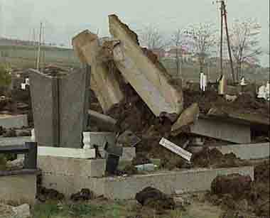 Zapadni mediji tvrde da NATO snage dejstvuju samo po vojnim ciljevima 'kako bi sprecili vojne operacije Jugoslovenske armije'. Medjutin, posledice bombardovanja nedvosmisleno pokazuju da NATO celnici imaju samo jedan cilj: unistiti srpski narod, njegovu drzavu i celokupnu srpsku istoriju. Bombardovanjem manastira i crkava, starijih i od Amerike, ne moze dovoljno kazniti nijedan ovozemaljski sud. Western media's claim that NATO is bombing sovereign country to prevent 'military actions of Yugoslav army' in it's own territory. But, consequences of bombing are showing that NATO leaders have only one goal: to destroy Serbian people, it's country, and complete history of this nation. Bombing of churches and monasteries, older then America, no court on this world can't punish enough. Westliche Medien behaupten,daß NATO auf militärische Ziele wirkt, so daß sie ,,militärische Operationen jugoslawischer Armee hindern kan". Die Kosequenzen des Bombardementszeigen aber zweifellos, daß NATO Führer nur ein Ziel haben: serbisches Volk, sien Staat und ganze Geschichte zu zerstören. Das Bombardement von Klöster und Kirchen, die älter als Amerika sind, kann kein Gericht genug bestrafen. 'Sprecavajuci' laziranu humanitarnu katastrofu Albanaca na Kosovu i Metohiji, Bil Klinton izazvao je stradanje 10 miliona stanovnika ove zemlje. 'Preventing' false humanitarian catastrophe of