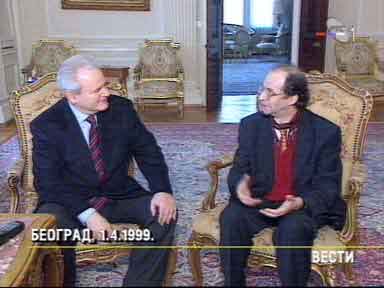 Predsednik S. Milosevic primio je danas u Beogradu lidera kosovskih Albanaca, Ibrahima Rugovu. Njih dvojica su se slozili da se resenje kosovskog problema moze naci samo mirnim putem. Dan ranije Rugova je u intervjuu grckoj televiziji izjavio da je njegova kuca netaknuta i da je on tamo od povratka iz Pariza. Tom prilikom Rugova je pozvao NATO da odmah obustavi agresiju i bombardovanje Srbije. |